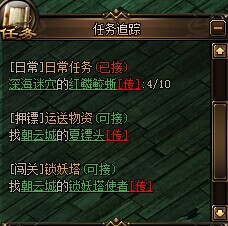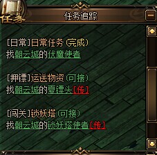 玩家抵达任务地图后,按照右侧任务追踪栏显示的日常任务进行即可,完成后点击追踪栏伏魔使者将被传送回朝云王城继续任务。