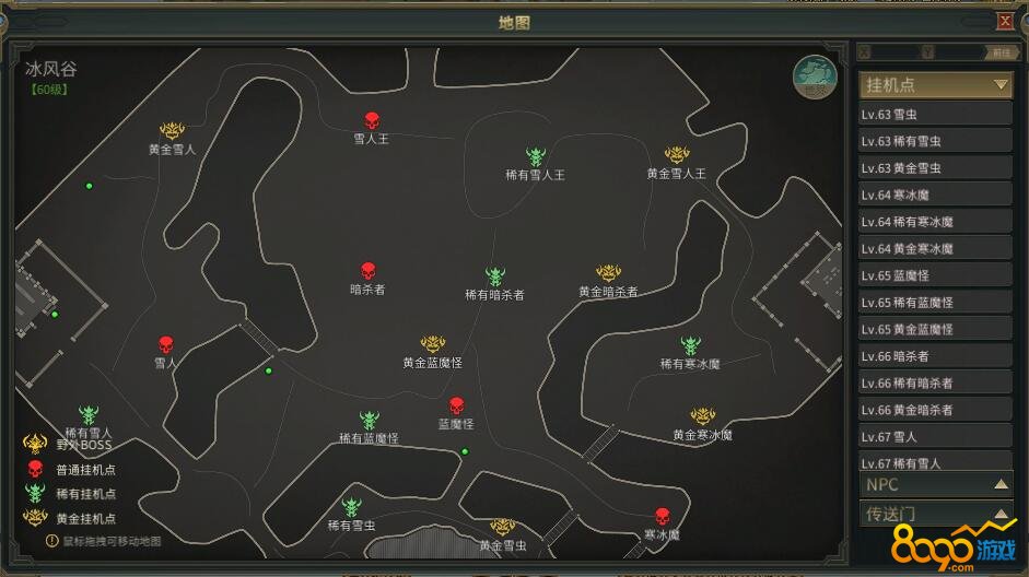 在8090暗夜奇迹中,黄金火龙王在勇者大陆、地下城、冰风谷、死亡沙漠、幽暗森林等场景每半小时随机出现。