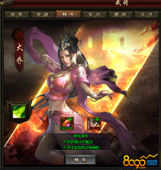 霸将三国里大乔是橙色武将,那为什么能跟红将媲美呢?因为她的技能。先看普通技能万物生,出手时对己方所有单位治疗,治疗效果是自身攻击力的百分比,在技能到达无双阶段时,不仅能给己方单位加血,还能增加攻击力,36%的几率给治疗者增加16%的攻击力,这个技能配合徐庶的技能加成,那效果大家都能想象的出来。