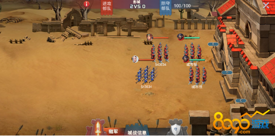 1.进入城战后,玩家只能在攻方、守方中选择一方派遣部队,每只部队必须由5名英雄组成