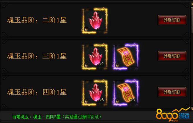 活动期间,魂玉达到指定要求即可领取大奖!每项奖励每人仅限领取一次!