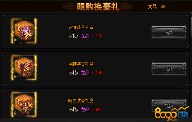 活动期间内,进行幸运探宝有一定概率获得龙晶。可以使用龙晶兑换下列极品奖励!