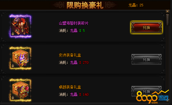 活动期间内,进行幸运探宝有一定概率获得龙晶。可以使用龙晶兑换下列极品奖励!