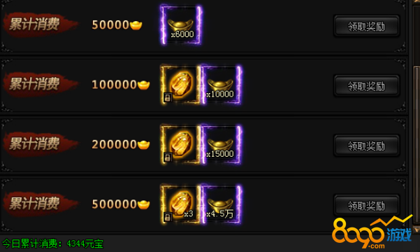 活动期间,每日累计消费指定金额元宝即可获得奖励!