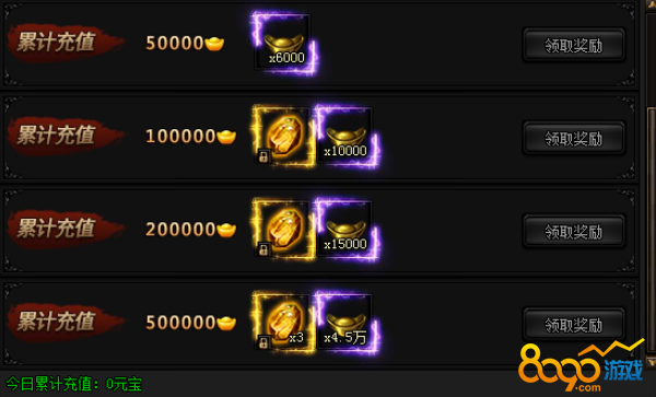 活动期间,每日累计充值指定金额元宝即可获得奖励!