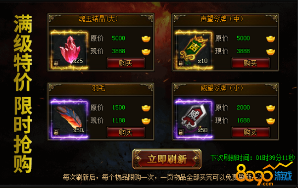 活动期间,玩家可以在神秘商店刷新购买超值道具。(温馨提示:最低6折)