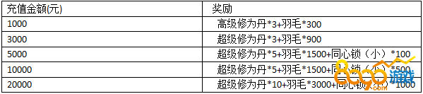 注:只能领取一档奖励(列:玩家充值5000元,只能领取5000元档奖励或者3000元档奖励和1000档奖励*2。)