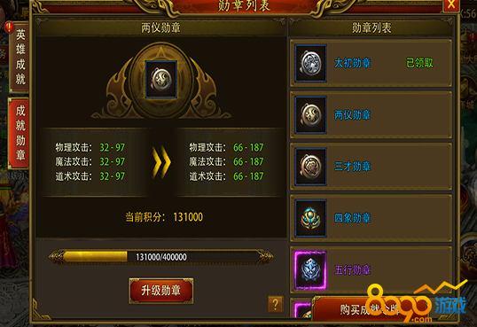 累计足够的成就积分就可以换取强大的成就勋章了!高等级的成就勋章不仅仅是荣誉的象征,更可带来丰厚的属性加成,有了强力的勋章,妈妈再也不担心我打怪不给力了!
