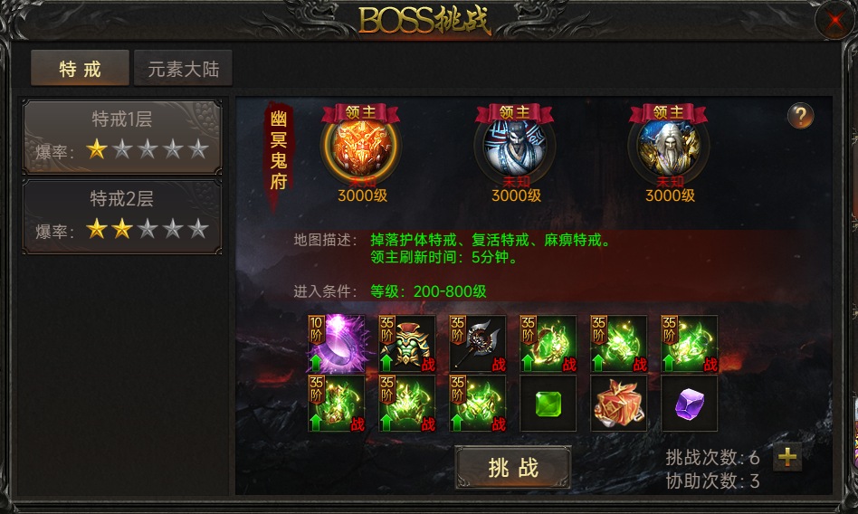 地图描述:掉落护体特戒、复活特戒、麻痹特戒。领主刷新时间:5分钟。