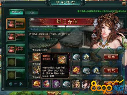 玩家首次充值会赠送军师貂蝉,在后期她是能够进阶成神将,非常霸气,前期充值活动中,基本都是会送神貂蝉的相关武将,譬如华佗蔡文姬 貂蝉 吕布。是绝对不能错过的武将哦。