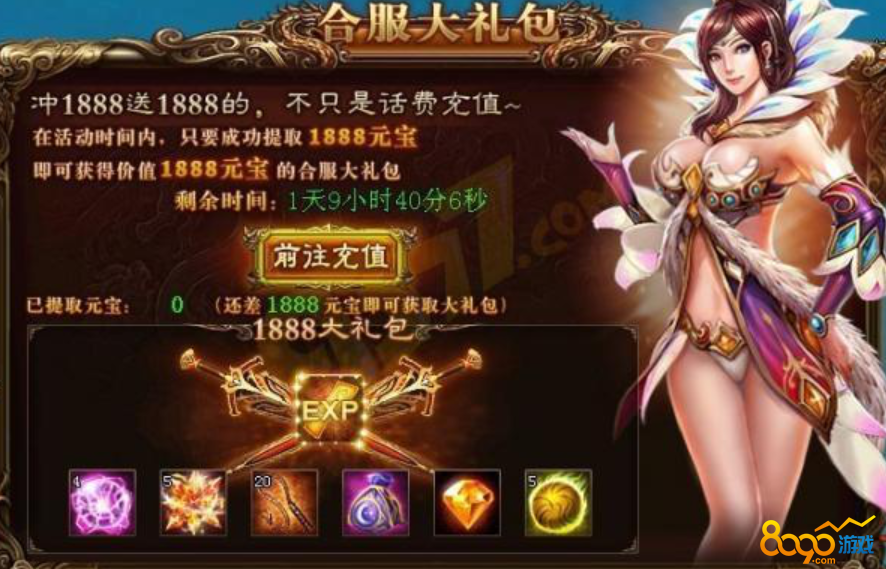 活动规则:在活动时间内,只要成功提取1888元宝,即可获得价值1888元宝的合服。