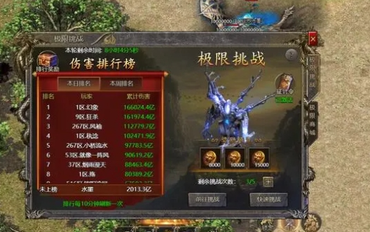 要参与极限挑战,玩家需要进入特定的副本,攻击里面的BOSS。在一定时间内,你的伤害值会不断累积。每人每天有5次挑战机会,5次挑战后的伤害值总和将作为你的最终成绩,显示在排行榜上。