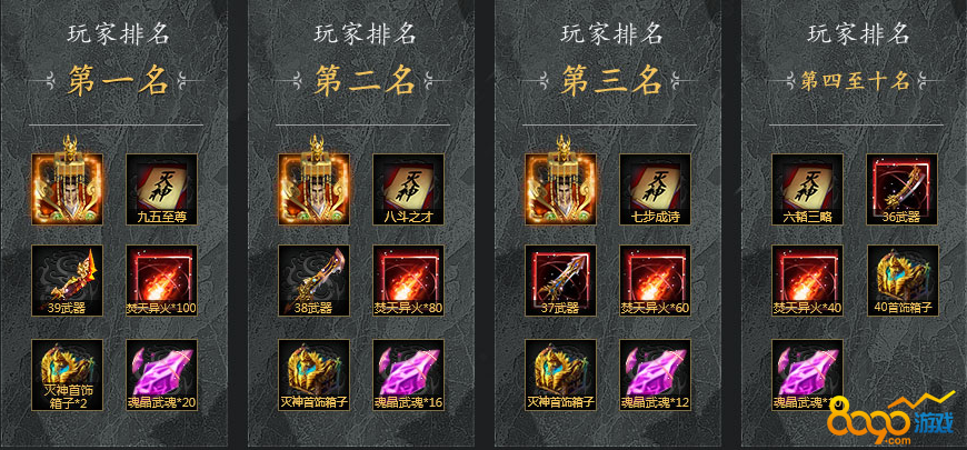 2、活动期间玩家充值总额满3000元(前十名以外)即可获得参与奖丰厚奖励;