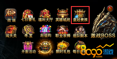在魔神页游中,很多奖励,都是通过元宝购买的,当然这点很多玩家比小编我都轻车熟路,但是有元宝,也需要等级才能开放,首先玩家进游戏后,先升级到80级以上,在页面右上角的地图旁边,就会有皇冠贵族的图标出现了哦,然后玩家点进去即可。