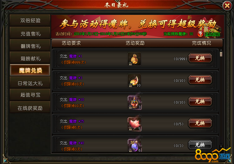 活动说明:活动期间,拥有魔牌道具可领取活动奖励