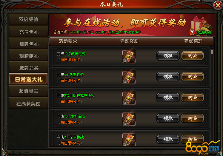 活动说明:活动期间,完成指定任务,或直接消耗一定魔石即可领取活动奖励