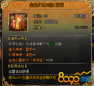 1、开服时间8-15天活动期间,众神宝藏大放送,高阶装备抽取概率翻倍,更有金山幻兽碎片来袭,限时4天,切勿错过!