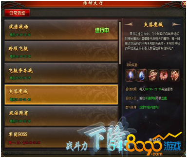 失落魔域,每天晚上9点半到9点45可以参加,失落魔域带来的收益应该是目前所有活动当中最高的,但是难度也是最高的。进入失落魔域的每一层都会有BOSS和小怪,我们主要目的就是通过击杀他们获取奖励。BOSS身上必然会掉落下一层的门票,而小怪身上也有一定的几率掉落下一层的门票。我们进入每一层应该做的就是直奔BOSS,毕竟好东西都在BOSS身上,有可能获取高端装备和一些稀有的道具,其实大家经常在游戏中因为强BOSS发生争斗,所以一般都是以小组为单位进行活动,这个组不能太大,因为一层没有那么多门票,一般三人组比较合适,大家一起抢BOSS,非常容易,而且击杀小怪速度也比较快,在失落魔域前几层中,谁能够快速的下层才是王道,毕竟下层门票数量有限,越往下层走,我们的竞争也就越小,而且下层的BOSS也越强大,而且这个活动,每通过一层系统都能够带来大量的奖励,活动开启两小时,谁能够坚持到最后,谁肯定就是最后的玩家,这个地图当中PK是重头戏,大家为了门票大打出手,这个地图不红名,所以不要谦让,该战的时候就要战,亮剑精神很重要,即使你不亮剑敌人想打你也就打你~