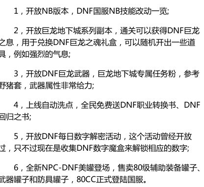 希望大家能够仔细的浏览一下dnf一月九号的更新改动内容平!