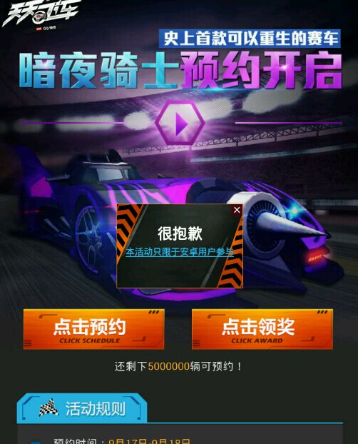 不少天天飞车的安卓用户预约暗夜骑士,发现无法预约吧,究竟是怎么回事呢?一起去看看吧。