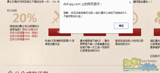 搜索"8090网页游戏"dnf公会副本积分为什么不能领?工会副本怎么通关不了?刷了5次了,显示的是任务没有完成,这究竟是什么情况?