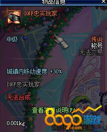 DNF忠实玩家是传说级别,无法合成,可以提升城镇内移动速度30%,顾名思义,只有最忠实的地下城玩家才能获得该称号。