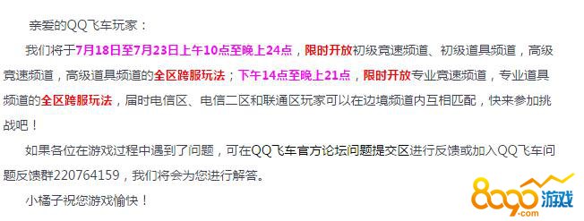 搜索"8090网页游戏"QQ飞车边境3区跨服限时玩法再次开启新的频道,7月18号的边境3区跨服限时玩法具体是什么时候开始?玩家应该怎么玩呢?听下面的介绍吧。