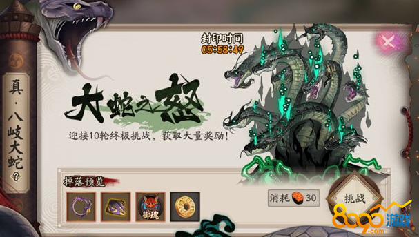 其一,玩家在五分钟内能够单人挑战 通关御魂的第十层,就能获得大蛇印记,并且有几率发现新副本。