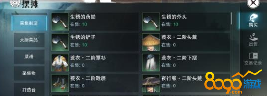 首先这时候大家摆摊购买玩家出售的,大家自己在生活技能里面就可以制作的。装备图纸这些还有制作来源。