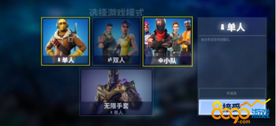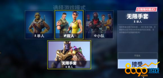 灭霸模式分为单人、双人、小队以及限时模式(无限手套)4种,其中,单人与小队模式是全天开放的,而双人与限时模式则需注意开放时间仅为每日10时至23时30分。