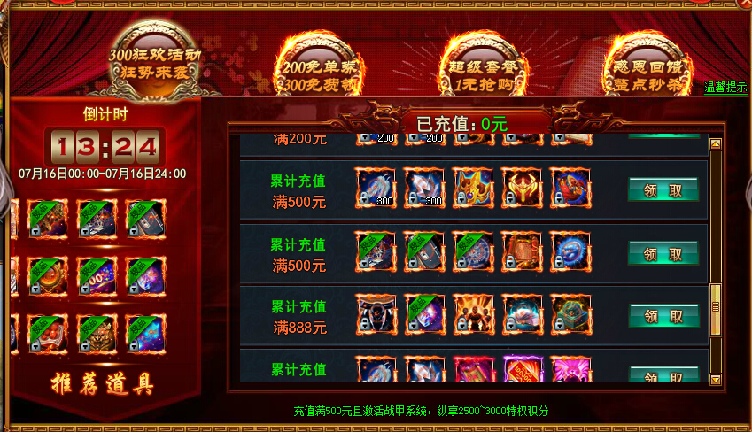 1、 当幸运值达到1200点时,每月七号可以通过邮件免费领取幸运礼包,幸运礼包奖励包含有三军帅印、附魔满日晶以及5000绑元;