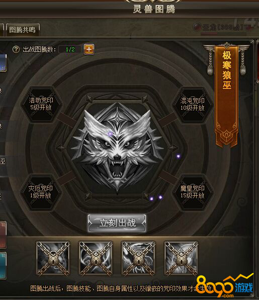 解锁更多的技能,人物的PK的伤害就会提高,所以末世狼王是不可少的图腾。