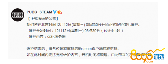 计划将会在北京时间12月12日星期三8点30分开始正式服的停机维护。预计更新维护到中午的12点30分的样子。一般是4个小时这样子哦。