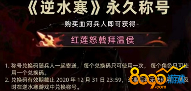 搜索"8090网页游戏"最近很多区的小伙伴应该都看到了红莲怒戟拜温候这个称号很是酷炫,小伙伴们一定很好奇这个称号是哪来的,小编各方打探才了解到该称号原来是线下获取的,需要购买逆水寒血河兵人手办才能获取兑换码,兑换码是与手办一起寄送的,心仪的小伙伴可以去各大电商平台购买哦,称号兑换有效期戒指到年底结束哦。