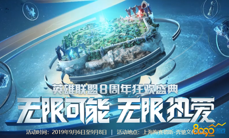 英雄联盟八周年狂欢盛典活动将于2019年9月6日至9月8日举行,届时将在上海梅赛德斯奔驰文化中心举办八周年狂欢盛典。活动期间,一共有八大活动共庆狂欢,我的LOL八周年,八周年心愿墙,全民共创英雄联盟热词,峡谷彩蛋大搜查,八周年战斗之夜,八周年限定皮肤,云顶之弈全民争霸赛,预测LPL晋级之路等等活动都可以在八周年狂欢盛典活动期间参与。另外八周年狂欢盛典期间,还会有英雄联盟八周年明星表演赛,陈赫,王思聪等英雄联盟明星也会参与其中,还有五折周边由你来选,另外门票售卖也将在8月23日14点二次开启,这一英雄联盟最盛大的活动你也可以参与其中,想要亲临现场的玩家们赶紧抢购吧。