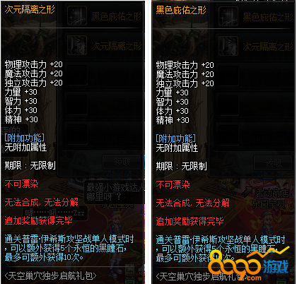 搜索"8090网页游戏"DNF次元隔离之形怎么没有额外获得黑瞳石奖励?DNF11月14日上架的天空巢穴礼包中的次元隔离之形光环除了外观特效好看以外,还有一个特殊效果,那就是能额外黑瞳石奖励,不过有的小伙伴却没有获得这个额外奖励,这是为什么呢?