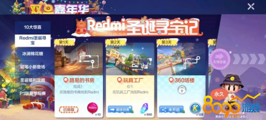 Redmi圣诞寻宝记活动的第二天活动已经正式开始了,第二天活动需要玩家在玩具工厂找到这个Redmi,玩家在完成之后可以获得蓝色能量水晶作为奖励,那么在玩具工厂找到Redmi怎么完成呢?玩具工厂Redmi在哪里呢?