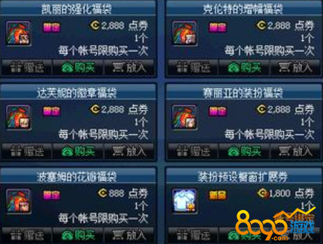 在活动期间,商城中将上架凯丽的强化福袋、克伦特的增幅福袋、达芙妮的徽章福袋、赛利亚的装扮福袋和波塞姆的花瓣福袋。购买不同福袋可以开出不同奖励。总的来看,各有个的特点,凯丽主要是强化卷,克伦特则是增幅礼包,达芙妮有梦想白金徽章灿烂的徽章等,赛利亚福袋则又稀有装扮兑换券,瑞鼠呈祥则是祝福礼盒,瑞鼠献礼礼盒则是大杂烩,什么都有不过等级都不高。小编介绍了这几个福袋之后,小伙伴们都知道自己需要什么了吧。