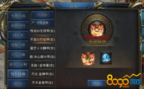 通过特定的材料及元宝合成更高级的物品,勋章、特戒、战意材料、技能书、武魂石、异宝均可合成。例一品牛魔勋章二魂+玄武真元可合成一品牛魔勋章三魂可将不需要的斗笠、直升卡等进行分解。例青云斗笠可分解成三个斗笠碎片.