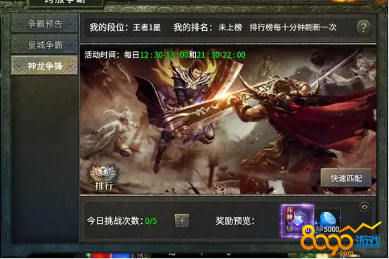 传奇币主要是通过神龙争锋活动来获得的,神龙争锋是一个每日活动,会在每天的12:30-13:00开启。活动开始之后,玩家通过匹配,进行阵营战的挑战。结束之后,会根据玩家的段位进行排名,排名越高的玩家,可获得的传奇币就越多。