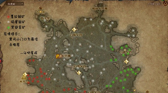 斗战神白虎岭矿点,墨纹铜矿、冥绝金矿、硫犀银矿: