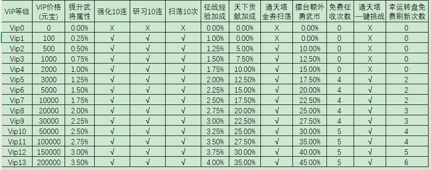 闪将三国VIP等级介绍 VIP等级特权说明