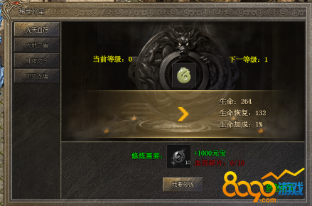 玩家可以在盟重省npc稀世珍宝处,打开宝物系统。不同的宝物增加不同的属性,血符增加生命、生命恢复和生命加成;盾牌增加防御、韧性和暴击抵抗;神令增加攻击、准确和攻击加成;龙魂增加暴击、暴击伤害和暴击率。