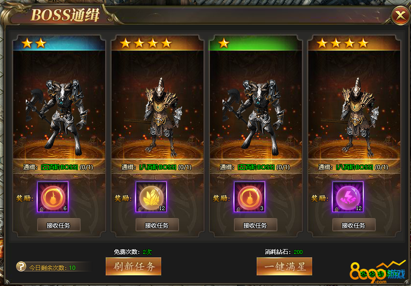 每天可以接取10次BOSS通缉,BOSS通缉完成后可获得大量元神觉醒所需的各属性元灵,每天完成BOSS通缉,元神将更快觉醒。