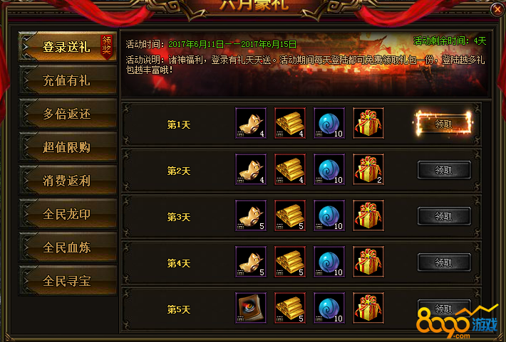 2、活动说明:活动期间,每日登陆可领取免费礼包一份,登陆越多礼包越丰厚哦。