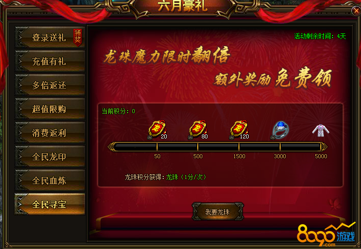 2、活动说明:龙珠魔力限时翻倍,额外奖励免费领