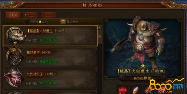 ● 玩家可通过点击主界面的极品BOSS图标进入界面: