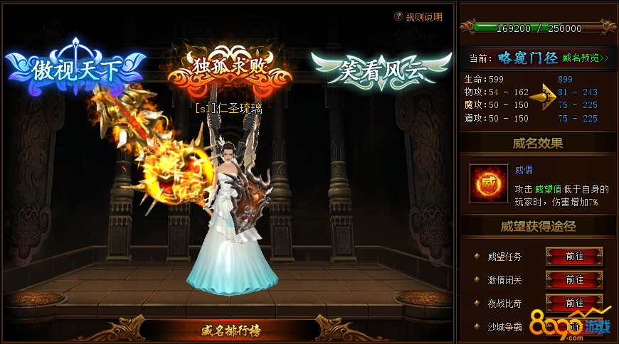 在屠龙战神中的威名是一项很重要的属性,威名除了可以给角色提供属性加成,还有其他方面的作用,下面就具体的说下屠龙战神中威名的内容。