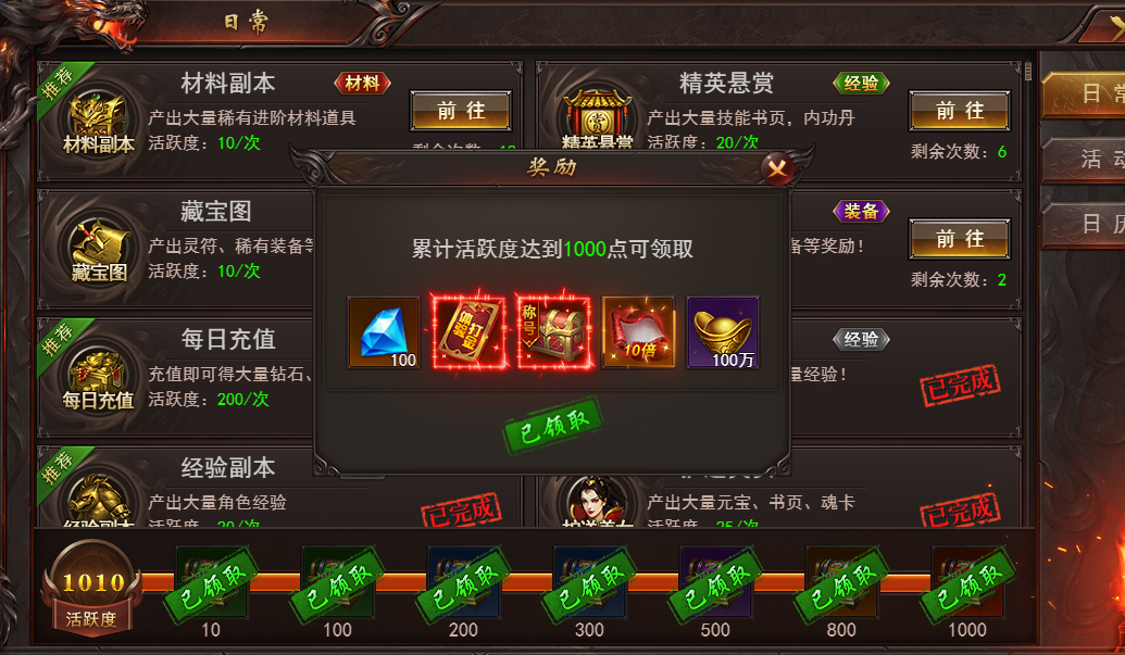 全民伐木活动开启之后,玩家们可以通过伐木获得木材,然后使用木材来兑换各种道具。这些道具可能包括游戏内的元宝、金币、灵符和钻石等。至于玩家获得的是哪种奖励,是完全随机的,看运气。运气好的话,玩家们就有机会获得钻石。
