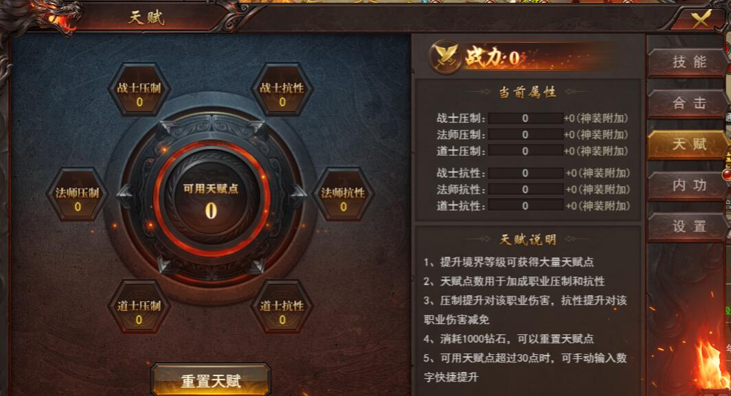 1000钻石重置天赋点: 如果您希望重新分配天赋点数,您可以花费1000钻石进行重置。这样可以让您重新分配已经投入的天赋点数。